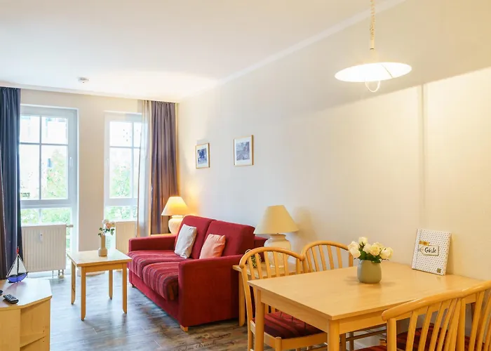A Fewo 632, Seepark Sellin apartman egy 1 hálószobás szálláshely kerékpár használattal és borbéllyal. A Granitz-vadászlak 4 km-re fekszik ettől apartmantól.